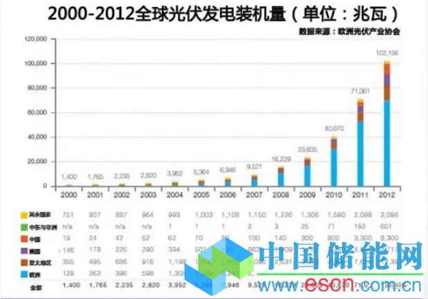 圖3.1 2000-2012年全球光伏發(fā)電裝機(jī)量