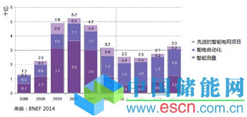圖2 美國用于智能電網(wǎng)的支出2008-2017(歷史和預測)