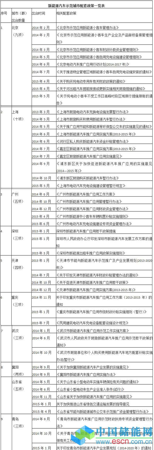 據(jù)第一電動網(wǎng)不完全統(tǒng)計,截至2015年7月24日,在被國家列入新能源汽車推廣應(yīng)用城市(群)的39個城市(群)88個城市中,共有37個城市(群)62個城市出臺新能源汽車配套政策175項(xiàng)。其中,46省市出臺新能源汽車推廣方案明確補(bǔ)貼標(biāo)準(zhǔn),而北京、上海、天津、重慶、青島、廣東、廣州、佛山、惠州、東莞、山西、江蘇省、南京、揚(yáng)州、西安、武漢、湖南、??凇⒛喜?、蕪湖、瀘州、成都、廈門、金華、杭州等25個省市出臺了新能源汽車補(bǔ)貼細(xì)則。
