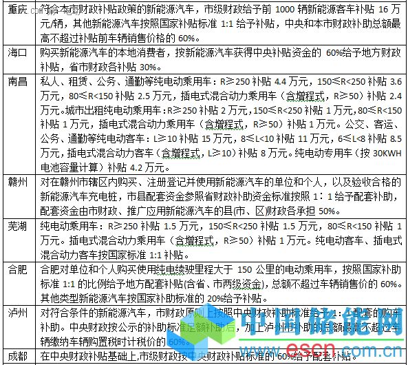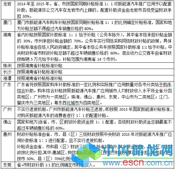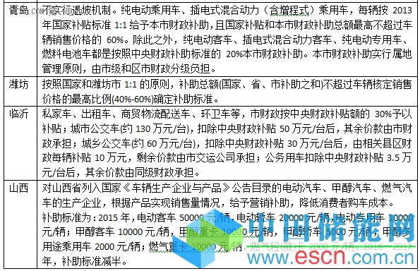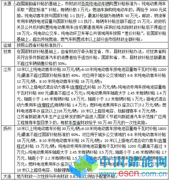 在46個省市的補(bǔ)貼政策里,按國家和地方財政1:1比例補(bǔ)貼的城市分別是:北京、青島、山東、濰坊、武漢、襄陽、天津、廣州、惠州、東莞西安、福建、龍巖、廈門、湖南、株洲、長沙、寧波、深圳、瀘州、贛州等,其中青島、廣州、惠州、深圳四城市實(shí)行不退坡機(jī)制。上海、太原、運(yùn)城、廣東、大連、南昌、蕪湖、昆明等城市按各自不同的補(bǔ)貼方式給予補(bǔ)貼。