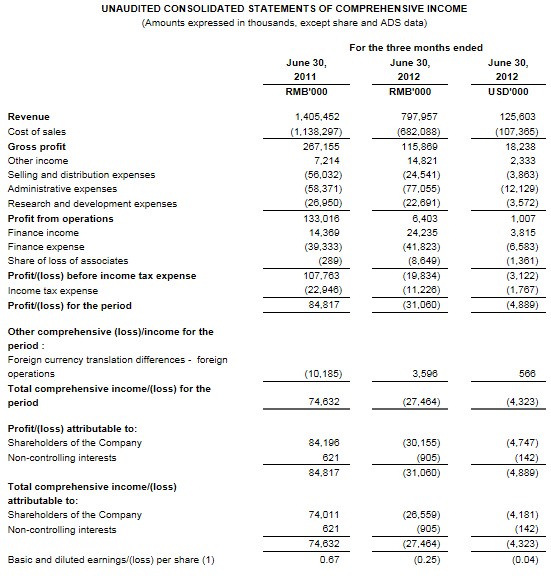 虧損為2750萬(wàn)人民幣(430萬(wàn)美元),去年同期為盈利7460萬(wàn)人民幣;