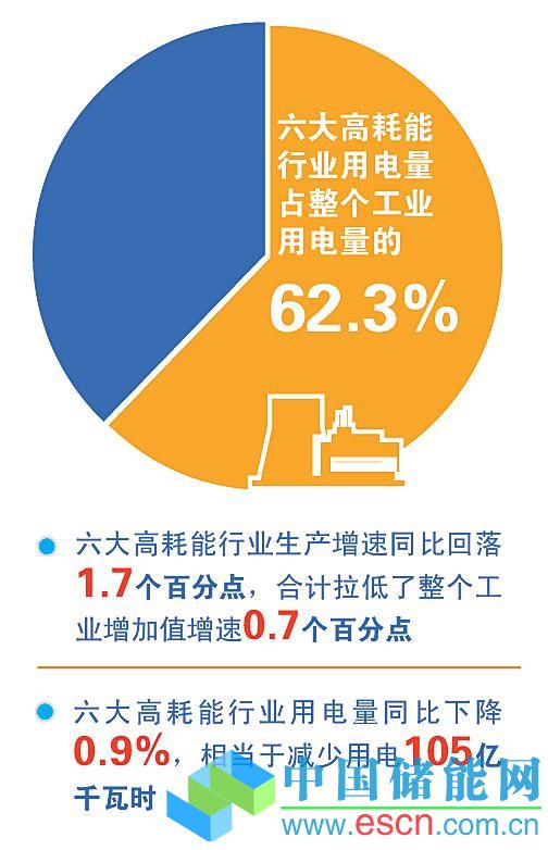 李云卿解釋說,從工業(yè)和生產用電結構來看,六大高耗能行業(yè)用電量占整個工業(yè)用電量的62.3%,但增加值占工業(yè)增加值的比重只有28.4%。上半年,六大高耗能行業(yè)生產增速同比回落1.7個百分點,合計拉低整個工業(yè)增加值增速0.7個百分點。但六大高耗能行業(yè)用電量同比下降0.9%,相當于減少用電105億千瓦時。這105億千瓦時是什么概念?上半年全部工業(yè)用電量同比減少78.4億千瓦時,六大高耗能行業(yè)用電減少量是全部工業(yè)用電減少量的1.34倍,拉低工業(yè)用電增速0.6個百分點,超過了全部工業(yè)用電量0.4%的降幅。這就解釋了為什么工業(yè)用電量在下降,但是工業(yè)增加值還保持一定增長。