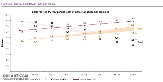 屋頂光伏系統(tǒng)實現(xiàn)平價上網(wǎng)的速度將超越公用事業(yè)光伏系統(tǒng)。據(jù)畢馬威透露,在印度部分地區(qū),屋頂系統(tǒng)或許最早將于2014年達到平價上網(wǎng)。