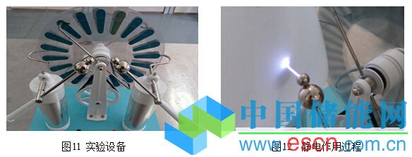 本實(shí)驗(yàn)采用J2310式感應(yīng)起電機(jī),如圖11和圖12。當(dāng)兩個(gè)起電盤(pán)快速旋轉(zhuǎn)時(shí),在兩個(gè)放電球部聚集電性不同的電荷,將EVA膠膜置于其中部,以便模擬放電過(guò)程。