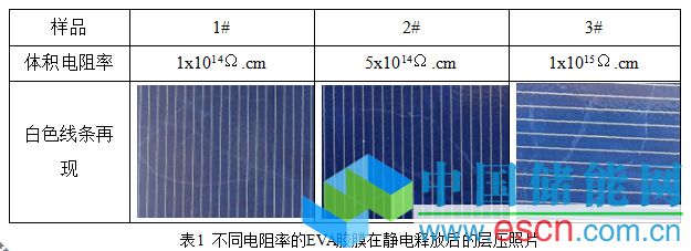 使用三種不同體積電阻率的EVA膠膜,觀察體積電阻率是否影響白線的產(chǎn)生;