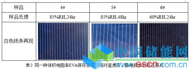 同一種體積電阻率的EVA膠膜,用不同的相對(duì)濕度對(duì)其進(jìn)行處理,觀察白線的產(chǎn)生是否有不同。