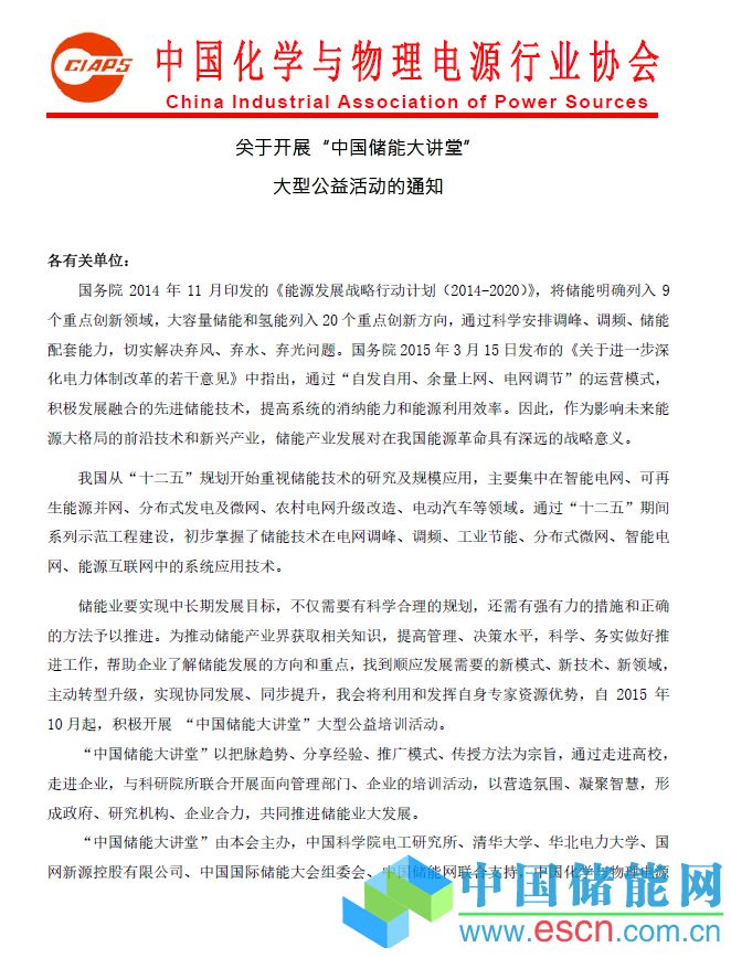中國化學(xué)與物理電源行業(yè)協(xié)會儲能應(yīng)用分會秘書處