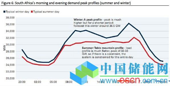 圖:南非夏冬兩季早晚用電高峰的電力需求對(duì)比