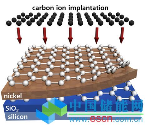 Kim的方法基于離子注入技術(shù)--一種和微電子器件相兼容的技術(shù),通常用來給半導體材料中摻入雜質(zhì)。在離子注入過程中,碳離子被電場加速,在500攝氏度的溫度下轟擊鍍有鎳層和氧化硅層的硅襯底。 鎳層,因其高的碳溶解度,被用來作為合成石墨烯的催化劑。隨后,整個樣品經(jīng)過高溫激活退火處理(約600到900攝氏度)使碳原子之間形成蜂窩狀晶格結(jié)構(gòu),也就是石墨烯的特征微觀結(jié)構(gòu)。