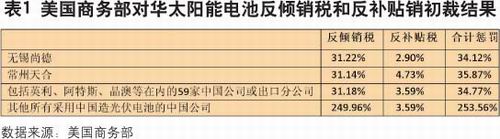 5月18日美國商務(wù)部宣布對中國輸美太陽能電池(包括采用中國太陽能電池的其它國家太陽能模組)征收31.14%至249.96%的高額反傾銷稅(表1)。這一初裁立即在中國光伏業(yè)界引起強烈反響。天合太陽能老總高紀(jì)凡在接受電話采訪時直呼:“太高了,完全不能接受!”尚德電力老總施正榮表示裁決不公正但同時表示將積極和美方斡旋,爭取調(diào)解。尚德電力是目前中國唯一在美國設(shè)廠的大型光伏廠商,這一表態(tài)也在情理之中。一向低調(diào)的阿特斯太陽能也公開表示反對,稱這一裁決將使中國光伏產(chǎn)品在美市場的優(yōu)勢蕩然無存。