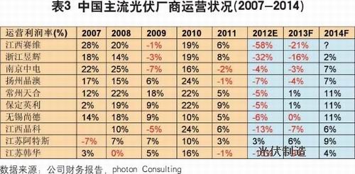 中國絕大多數(shù)多晶硅廠商前景暗淡,那么硅片、電池片、模組等下游廠商的狀況又如何呢?從去年第二、三季度開始,中國主流的光伏廠商的運營就已經(jīng)開始出現(xiàn)赤字,而且虧損的嚴(yán)重程度在不斷加劇。更為令人不安地是,這些公司的運營狀況有可能要一直等到2014年才能有所改善(表3)。中國公司在經(jīng)歷了2009年的低潮之后,托歐洲市場之福,2010年經(jīng)營狀況大幅改善。但盲目地擴大產(chǎn)能、一味追求“高大全”的垂直整合模式迅速導(dǎo)致了全球產(chǎn)能的過剩,這不但在歐美引起了一片抵制中國公司和產(chǎn)品的雜音而且最終還危及了中國公司本身的盈利能力。這大概是再次印證了近20年來制造業(yè)的一個“中國現(xiàn)象”—不管什么東西,如果中國人能夠大規(guī)模地制造了,結(jié)果很快變得大家都沒錢賺。反過來講,這大概也算是中國對世界的貢獻吧。用一些中國光伏企業(yè)老總自己的話來講,中國人是在(全世界)開拓一個廉價的平民光伏時代。不過我懷疑一旦這個廉價光伏時代真的來了,現(xiàn)在的很多開拓者都將被列入“先烈”的名單了,而未來的市場主宰者將是非常另類的公司。我沒有“水晶球”來透析未來,但目前的市場數(shù)據(jù)表明,中國70-80%的光伏公司在未來2-3年里將難以為繼,大量過剩的產(chǎn)能將被浪費,以換取利潤的回升,這樣少數(shù)的幸存者才可以在一個“廉價光伏時代”里繼續(xù)偷生。