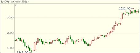 2012年9月份,倫鉛一路上揚(yáng),截至本月收盤較上月上漲306美元,漲幅15.58%,最高觸及2322美元,最低1956美元,本月報(bào)收2270美元,是近一年來(lái)最大的單月漲幅。