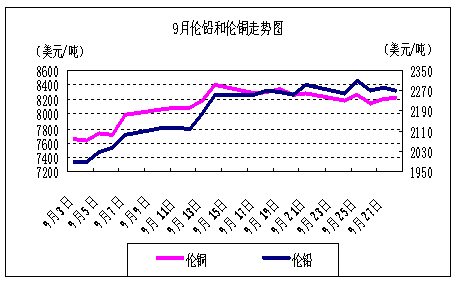 9月份,倫銅總體上以震蕩上行而后高位小幅回落為主,中旬以前受助于量化寬松推動(dòng),節(jié)節(jié)攀升,最高漲幅達(dá)10.3%;不過(guò)下旬以后因其自身基本面不足開(kāi)始展開(kāi)高位回調(diào),幅度2.1%,總體上,偏好情緒為主基調(diào)。但是中國(guó)需求不是很樂(lè)觀,對(duì)銅價(jià)長(zhǎng)效支撐不夠,因此,高位回落乃勢(shì)在必然。另外,投機(jī)資金高位繼續(xù)撤離銅市,因此對(duì)整個(gè)金屬市場(chǎng)人氣的影響稍微不利。銅價(jià)10月能否維持較強(qiáng)走勢(shì)關(guān)鍵還在于需求前景,另外,中日最近升級(jí)的釣魚島事件或?qū)︺~需求構(gòu)成不利,且需密切關(guān)注10月公布的重要經(jīng)濟(jì)數(shù)據(jù)對(duì)其影響。