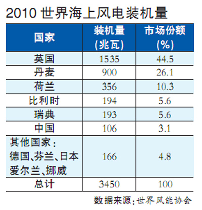 2010年歐洲新安裝了308臺(tái)海上風(fēng)機(jī),海上風(fēng)電裝機(jī)容量較2009年增加51%,創(chuàng)下歐洲海上風(fēng)電增長(zhǎng)的新紀(jì)錄。