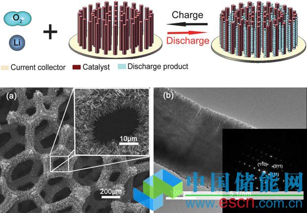 溫兆銀帶領(lǐng)的課題組設(shè)計(jì)和制備成功具有(111)面優(yōu)先生長(zhǎng)的Co3O4無(wú)支撐催化劑,并獲得了優(yōu)異的容量、極化等電化學(xué)性能,研究結(jié)果發(fā)表在Energy & Environmental Science(2011,4, 4727),劉建軍帶領(lǐng)的研究小組將第一性原理計(jì)算與熱力學(xué)分析結(jié)合建立O2/Li2O2/Co3O4的三相界面模型,揭示了Co3O4(111)面具有高催化活性的機(jī)制,進(jìn)一步驗(yàn)證了表面酸性與催化活性關(guān)系的理論預(yù)測(cè)。研究成果發(fā)表在美國(guó)化學(xué)學(xué)會(huì)的刊物ACS Catalysis(2015, 5, 73)上。