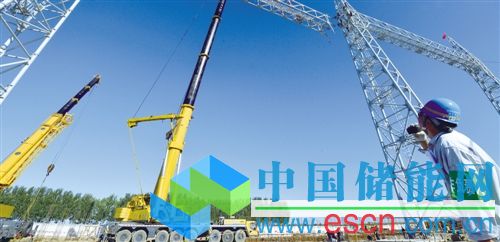 9月25日,在北京東1000千伏變電站施工現(xiàn)場,工程負責人在指揮吊裝構(gòu)架橫梁。