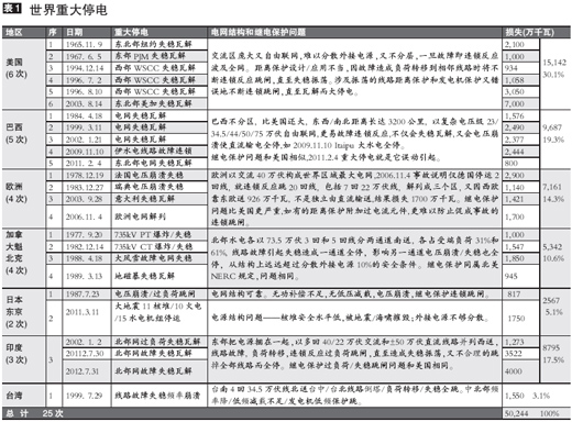 印度事故后,全世界總計發(fā)生了25次電網(wǎng)重大停電(每次損失≥800萬千瓦)(詳見表1——編者注)。
