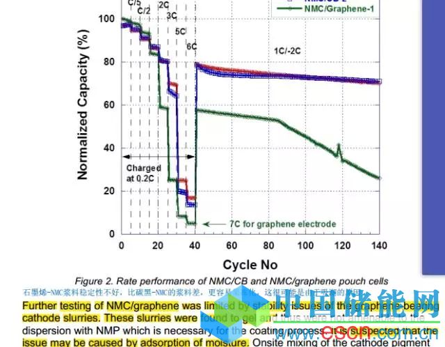 關(guān)于石墨烯對于調(diào)漿實際工藝的影響,有Oak Ridge National Laboratory與Vorbeck(有名的石墨烯業(yè)內(nèi)廠商)的披露的研究成果,他們發(fā)現(xiàn)石墨烯對于漿料的工藝的性能有很消極的影響,如下圖所示: