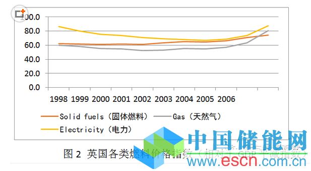 回看英國售電價格的歷史數(shù)據(jù)發(fā)現(xiàn),1998年后,英國售電價格持續(xù)7年走低,主要原因是一次能源價格下滑,但仍能看出1998年后,零售商的購售價差在明顯縮小,單靠買、賣電賺錢的利潤空間受到了擠壓。在1998-2006年間,英國以天然氣、燃煤發(fā)電為主,核燃料發(fā)電次之(圖1)。對比英國各類燃料價格指數(shù)發(fā)現(xiàn),在此期間,固體燃料的價格指數(shù)在緩慢上升,天然氣的價格指數(shù)先是維持不變?nèi)缓笾饾u走高,而售電價格與一次能源價格走勢大體相近,但在1998年售電側(cè)放開后,售電價格以更快的速度下降,售電價格與一次能源的價格差距明顯縮?。▓D2)。