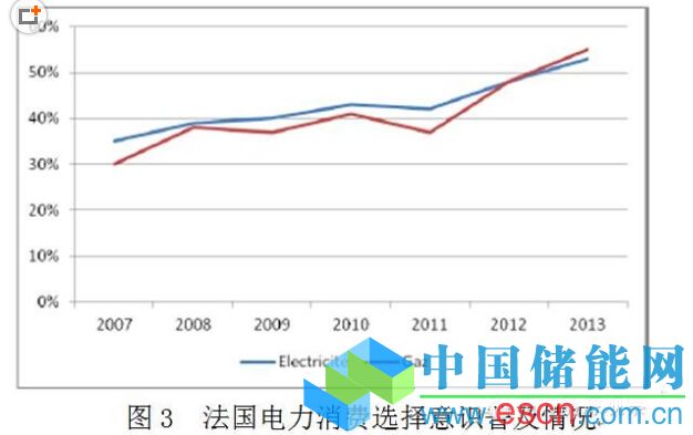市場意識的培育除了有政府或電力主管部門外,也可以是最先進(jìn)入的新型零售商來推進(jìn),但通常都需要投入一定的成本和時間。例如,美國德州公共事業(yè)管理委員會(PUC)在電力零售市場建立的初期就“前期電力消費選擇意識”的普及做了很多工作,向用戶宣傳德州電力零售市場的基本情況和用戶關(guān)注的問題,并組織開發(fā)了PowerToChoose.com網(wǎng)站,以方便用戶查詢不同零售商的信息、不同售電方案,也可在線便捷地轉(zhuǎn)換零售商。PUC從1999年開始普及工作,措施得當(dāng),推動有力,成效顯著,2000年德州居民用戶普及率達(dá)15.3%,2001年3月這一數(shù)字上升到23.3%,而到2001年8月上升到34.3%,2002年8月達(dá)到62%;2002年,德州商業(yè)用戶有55.2%表示熟知售電側(cè)開放競爭。德州電力消費選擇意識普及的案例在國際上是成功的個案,背后需要有強(qiáng)大的政策、專業(yè)團(tuán)隊和資金的支持。而國際上大多數(shù)國家售電側(cè)普及進(jìn)展都不盡人意。法國2000年開始放開20%的大用戶進(jìn)入市場,2007年放開全部用戶,此時用戶的普及率才35%左右,2007-2013年期間進(jìn)一步開展推廣工作,7年的普及效果是法國熟知售電側(cè)放開競爭的用戶比例僅從35%上升到53%(詳見圖3)。