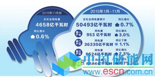 11月第三產(chǎn)業(yè)用電量為566億千瓦時,同比增長9.4%,保持了明顯的高速增長趨勢。這一數(shù)據(jù)比10月份的554億千瓦時增長6%。第三產(chǎn)業(yè)雖然占全社會總用電量的比例還比較低,但連續(xù)保持高速增長的勢頭,正是經(jīng)濟(jì)新常態(tài)下拉動發(fā)展的內(nèi)生動力。