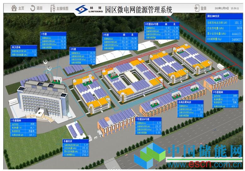 林洋集團投資建設(shè)了不同類型的新能源,包括屋頂光伏、車棚光伏、風力發(fā)電等,還有充電樁和儲能系統(tǒng),后期還會增加其它分布式能源,如燃氣CHP。微電網(wǎng)可以方便各種形式能源接入,其智能控制系統(tǒng)通過監(jiān)測不同形式能源狀態(tài),協(xié)調(diào)控制各能源的協(xié)同工作,最大發(fā)揮可再生能源的利用率和效能;