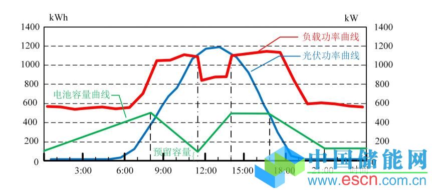 園區(qū)現(xiàn)有的2MWp的屋頂光伏,在光照較好時,發(fā)電量基本可以滿足園區(qū)的正常生產(chǎn)和辦公用電,但在中午休息時,園區(qū)負荷較低,光伏所發(fā)電量無法有效利用。儲能系統(tǒng)在負載較低的時候充電,在負載高峰時放電,提高太陽能的利用率;
