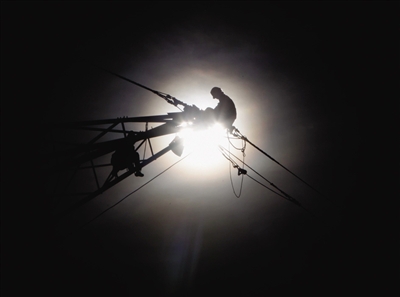 工程西昌地區(qū)裕隆段,施工人員在鐵架上做“消缺”,查看并處理可能存在的問題。