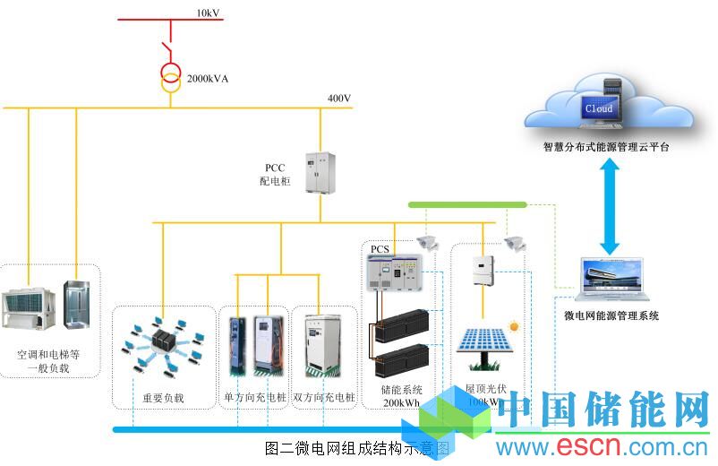圖二所示為上海國(guó)際汽車城微電網(wǎng)結(jié)構(gòu)示意圖。該微電網(wǎng)系統(tǒng)具有以下幾個(gè)特點(diǎn):