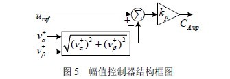 系統(tǒng)在孤島模式下運(yùn)行時,要想鎖相環(huán)能夠自振蕩,必須給其一個初始的振蕩條件,且為了使提取的正序信號幅值與逆變器輸出電壓幅值一致,必須要跟蹤孤島模式下逆變器輸出電壓基準(zhǔn)值,為此本文給出的鎖相環(huán)系統(tǒng)中增加一個幅值控制器,如圖5 所示。