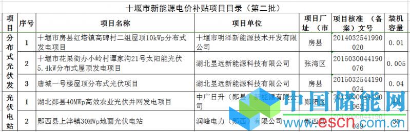 附件:十堰市新能源電價補(bǔ)貼項(xiàng)目目錄(第二批)