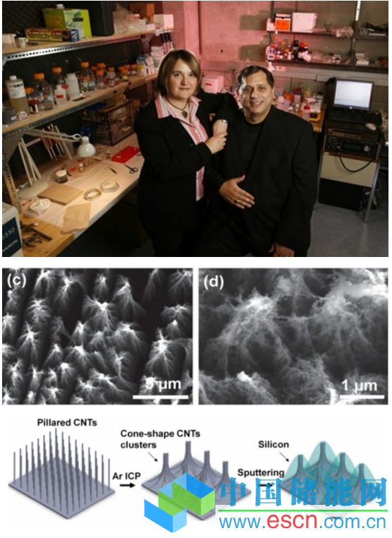 中國(guó)儲(chǔ)能網(wǎng)訊:加州大學(xué)河濱分校的一組研究人員開發(fā)出了一種新架構(gòu)的硅陽(yáng)極,應(yīng)用在鋰電池中可以使充電過(guò)程快16倍。新的設(shè)計(jì)構(gòu)建于3D結(jié)構(gòu)的錐形碳納米管材料之上??梢允闺姵乇仍瓉?lái)輕40%,卻能攜帶比原來(lái)多60%的電量,將使充電速度快16倍左右。