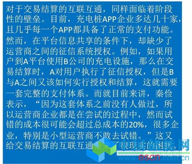 此外,對于交易結(jié)算互聯(lián)互通的解決辦法,童光毅提出,要建立運營商共同的支付體系,可以與金融機構(gòu)緊密合作,通過整體設(shè)計,制定一個可行的金融支付方案。對此,秦儉也認為,“最理想的方式就是依托現(xiàn)有的傳統(tǒng)金融支付方式,為運營商設(shè)計整體的支付流程,包括充電設(shè)施運營商之間如何授權(quán)等,先從兩三家達成協(xié)議后,進而各家逐漸形成統(tǒng)一的支付方式?!绷硗猓J為,“大型企業(yè)在支付系統(tǒng)的研發(fā)上較小型企業(yè)更具有資金優(yōu)勢?!?