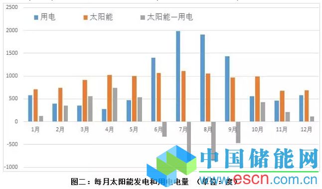 安裝7.2千瓦的屋頂太陽能電板,全年發(fā)電量約為10938度,扣除電池的550度電能損耗后,可滿足用戶的全年用電需求。太陽能電板的月輸出電量見上面的圖二。