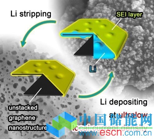 “我們發(fā)現(xiàn),藉由大量減少局部電流密度,就能有效抑制鋰枝晶的生長。根據(jù)這樣的概念,我們采用具有超高比表面積的非堆棧石墨烯材料,打造出納米結(jié)構(gòu)的陽極。結(jié) 果顯示這是一種十分有效的方法,”清華大學(xué)化學(xué)工程博士研究生兼該研究的主要作者Rui Zhang解釋,“此外,我們采用雙鹽電解液,取得更穩(wěn)定且更靈活的固態(tài)電解質(zhì)接口,以避免鋰金屬與電解液進(jìn)一步發(fā)生反應(yīng)?!?