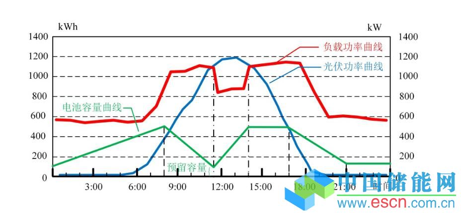 上面這張圖反映的就是:2015年9月份光伏平均日發(fā)電量為6532kWh,中午11:30到14:00之間平均發(fā)電量2786kWh,這個(gè)時(shí)間段的平均負(fù)載需求為2115kWh,低于光伏發(fā)電量。在沒(méi)有微電網(wǎng)儲(chǔ)能時(shí),光伏發(fā)電在滿足園區(qū)用電后,剩余部分經(jīng)過(guò)升壓變壓器后無(wú)償并入電網(wǎng)。儲(chǔ)能系統(tǒng)可以很好利用中午時(shí)段園區(qū)無(wú)法消納的光伏發(fā)電量給儲(chǔ)能電池(500kWh)充電,并在用電高峰時(shí)段放電。微電網(wǎng)能源管理系統(tǒng)會(huì)根據(jù)每天的生產(chǎn)安排、預(yù)測(cè)的光伏發(fā)電量,適當(dāng)調(diào)整電池充放電比例,同時(shí)系統(tǒng)預(yù)留一部分電池容量給數(shù)據(jù)中心和關(guān)鍵負(fù)載做備用電源。微電網(wǎng)能源管理系統(tǒng)通過(guò)實(shí)時(shí)監(jiān)測(cè)電網(wǎng)狀態(tài),在電網(wǎng)發(fā)生故障時(shí),利用公共接入點(diǎn)(PCC)的靜態(tài)開(kāi)關(guān),快速切斷與電網(wǎng)的連接,進(jìn)入孤島運(yùn)行狀態(tài),確保微電網(wǎng)內(nèi)部關(guān)鍵負(fù)荷的供電。
