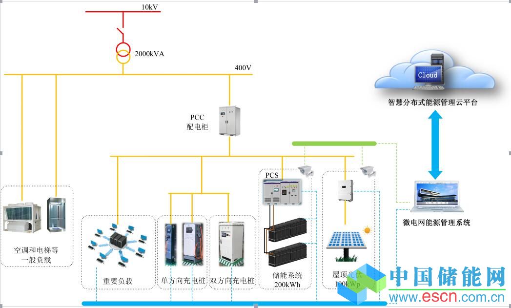 下圖則為上海國(guó)際汽車城微電網(wǎng)整體結(jié)構(gòu)示意圖。