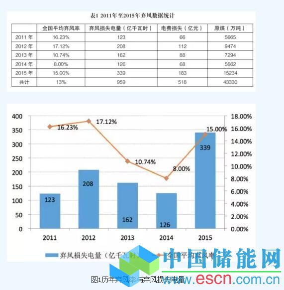 從統(tǒng)計(jì)來(lái)看,2011年至2015年我國(guó)棄風(fēng)電量累計(jì)損失達(dá)到959億千瓦時(shí)(三峽、葛洲壩兩座水電站在2015年的發(fā)電量一共是1048億千瓦時(shí),2014年江西省一年的全社會(huì)用電量是1018億千瓦時(shí))。近五年平均棄風(fēng)率達(dá)到13.4%,電費(fèi)損失累計(jì)約518億元。相當(dāng)于燒掉原煤4億多噸,僅2015年燒掉原煤1.5億噸。