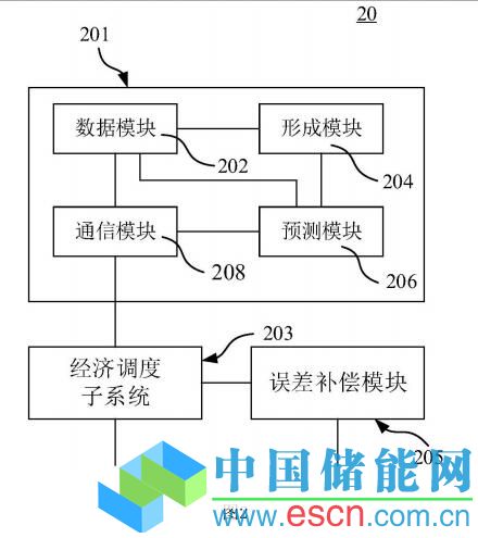 該微電網(wǎng)經(jīng)濟(jì)調(diào)度系統(tǒng)20還包括誤差補(bǔ)償模塊205,其與所述經(jīng)濟(jì)調(diào)度子系統(tǒng)203 相連,用于根據(jù)逆變器所發(fā)出的實(shí)際操作指令與經(jīng)濟(jì)調(diào)度子系統(tǒng)203所發(fā)出的經(jīng)濟(jì)調(diào)度指 令之間的誤差而生成補(bǔ)償信號,以對經(jīng)濟(jì)調(diào)度子系統(tǒng)203生成經(jīng)濟(jì)調(diào)度指令進(jìn)行補(bǔ)償。