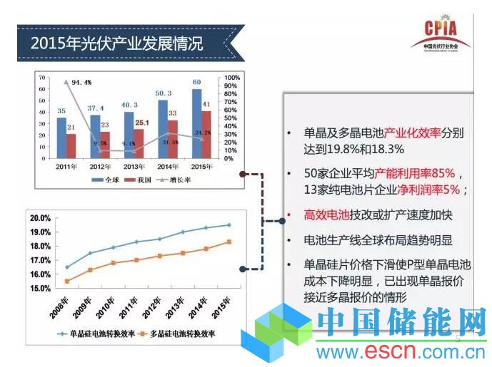 在電池片方面,我國也是多年居于世界產(chǎn)量的第一位,其中50%以上是中國大陸的企業(yè),且產(chǎn)業(yè)化效率也達到了較高水平。