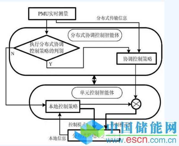 本發(fā)明提出一種基于多智能體的環(huán)形直流微電網(wǎng)協(xié)調控制方法,通過在微電網(wǎng)中構建兩等級智能體,一級單元控制智能體利用本地信息執(zhí)行本地狀態(tài)反饋控制,二級分布式協(xié)調控制智能體利用分布式信息、考慮分布式信息傳輸時滯的影響來執(zhí)行協(xié)調控制,進而實現(xiàn)母線電壓的二次調整。