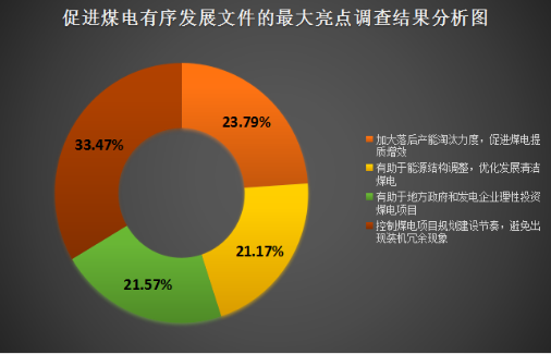 調(diào)查結(jié)果顯示,受訪人群普遍認為,煤電行業(yè)落后產(chǎn)能設(shè)定了淘汰標準,建立了風險預(yù)警機制,可有效促進煤電提質(zhì)增效、避免出現(xiàn)裝機冗余現(xiàn)象、促進煤電行業(yè)更加合理地規(guī)劃建設(shè)。對于這份促進煤電有序發(fā)展文件的最大亮點,23.79%的受訪人群認為能夠加大落后產(chǎn)能淘汰力度,促進煤電提質(zhì)增效;21.17%的受訪人群認為有助于能源結(jié)構(gòu)調(diào)整,優(yōu)化發(fā)展清潔煤電;21.57%的受訪人群認為有助于地方政府和發(fā)電企業(yè)理性投資煤電項目;有33.47%的受訪人群認為能夠控制煤電項目規(guī)劃建設(shè)節(jié)奏,避免出現(xiàn)裝機冗余現(xiàn)象。(調(diào)查結(jié)果如下圖所示)