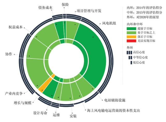 預(yù)測(cè)性評(píng)估凸顯了要實(shí)現(xiàn)海上風(fēng)電輸電運(yùn)營(yíng)商資本性支出以及增長(zhǎng)和規(guī)模方面的2020 年目標(biāo)還存在很大的難度。而實(shí)現(xiàn)電站輔助設(shè)施、安裝以及權(quán)益成本方面發(fā)展目標(biāo)的難度屬于中等,這也預(yù)示著風(fēng)險(xiǎn)依然存在。