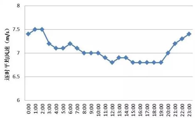 測風(fēng)塔70m高度風(fēng)速日變化曲線
