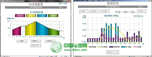 當(dāng)然,EV使用者也可以改變EV的使用計劃。充放電計劃也會根據(jù)改變后的使用計劃而自動進(jìn)行改變。同時也提供了用于顯示使用者實際充放電和太陽能發(fā)電電力使用狀況的畫面,通過該畫面可以確認(rèn)系統(tǒng)電力的用電量減少程度(圖1右)。