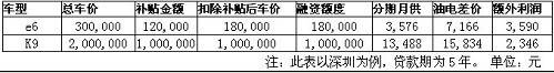 同時(shí)比亞迪的新方案,改一次付款為分期月供,合約期內(nèi)每月油電差價(jià)的節(jié)省金額高于月供。即使是零首付全額月供,油電差價(jià)也足以覆蓋月供金額,大大減輕了購(gòu)車(chē)方的月供壓力。以深圳為例,每臺(tái)e6出租車(chē)實(shí)際售價(jià)約18萬(wàn)元(減除國(guó)家及地方補(bǔ)貼共12萬(wàn)元),零首付五年期全額貸款,月供3576元,而每月的油電差價(jià)為7166元。相當(dāng)于客戶(hù)每月僅需用節(jié)省下來(lái)的油電差價(jià)的50%來(lái)支付月供。并且行駛里程越高節(jié)省金額越多。