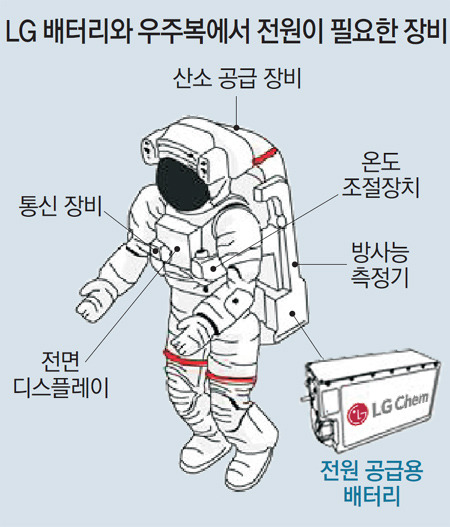 LG化學(xué)此次提供給NASA的電池,主要行使給航天服提供電源的用途。LG化學(xué)相關(guān)人士解釋說(shuō),“宇航服具備保護(hù)宇航員生命的供氧設(shè)備、通訊設(shè)備、輻射檢測(cè)儀等多種功能?!薄癓G化學(xué)的電池將起到成為這種尖端裝備的心臟的作用?!?