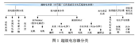 圖1和圖2分別介紹了超級電容器的分類以及不同超級電容的一些參數比較。