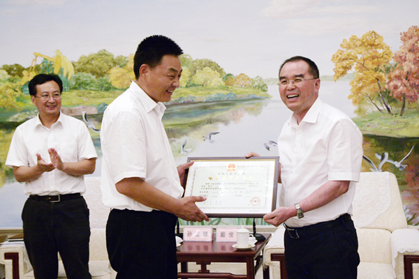 會議結(jié)束后,戴俊良局長與孫龍德總經(jīng)理一同出席電力業(yè)務(wù)許可證頒發(fā)儀式。戴俊良局長代表國家能源局東北監(jiān)管局,將東北地區(qū)第一張企業(yè)電網(wǎng)《電力業(yè)務(wù)許可證》(供電類)頒發(fā)給大慶油田電力集團公司,大慶油田有限責(zé)任公司副總經(jīng)理、大慶石油管理局副局長朱國文代表大慶油田電力集團接受許可證。