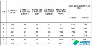 • 儲(chǔ)能設(shè)備單位投資上限(元/kW儲(chǔ)能)=儲(chǔ)能設(shè)備單位投資上限(元/kW風(fēng)